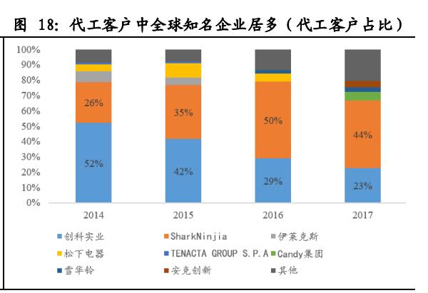 科沃斯能把产品价格做低的优势来自于其之前代工的制造优势。科沃斯以代工起家,制造优势为其高效、低成本的生产奠定基础。公司为创科实业、SharkNinjia、雪华铃、松下电器等国际知名品牌提供代工服务,在吸尘器、清洗机产品方面积累了丰富的制造经验。在代工的过程中,科沃斯积累了自己的研发团队,除了为代工吸尘器业务做研发外,也在组织团队研究自动化相关的项目。其电机、吸尘技术可以很好的复制到扫地机器人的制造中,实现供应链的高效管控和成本的有效控制,所以科沃斯至今都是少有的几乎全部自产的扫地机器人龙头,产品以性价比著称。