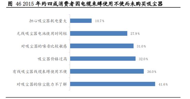 截止2016年,我国吸尘渗透率仅有11%,渗透率低的根本原因在于吸尘对于中国消费者并非刚需。吸尘器于上世纪80年代进入中国,但直到2016年,我国吸尘器普及率只有11%,与发达国家差距较大。我国吸尘器渗透率低的根本原因在于我国家庭地面清洁场景以地板、瓷砖为主,擦地、拖地需求很大,而吸尘器并不能很好清理硬地面脏污。同时有线吸尘器因为电线的限制,只能够吸取地面的灰尘,而没办法对天花板、吊灯等地方进行除尘处理,使用场景被进一步限制。