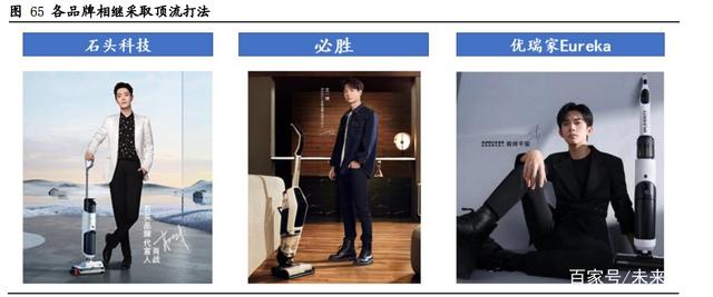 随着洗地机行业竞争加剧,各玩家也陆续开始采用顶流打法以增加品牌曝光度。必胜的洗地机四代由王一博代言,仅8月15日发售当天,全网销量约18000台,销售额约7200万元,成为当日天猫平台生活电器类目店铺销售额、单品销售额双第一,京东平台吸尘器类目单品销售额第一。石头8月25日推出的扫地机新品U10由肖战代言;8月26日,“eureka优瑞家”官方微博正式官宣易烊千玺成为其全球品牌代言人。