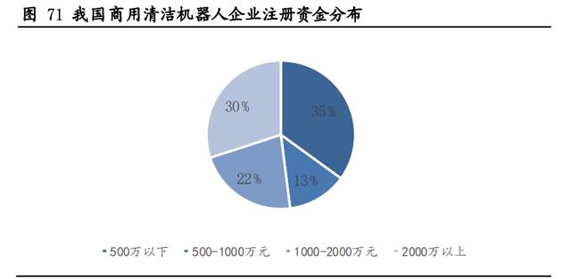 玩家众多,背景多元,皆处于探索阶段。近年来,陆续多家企业进入商用清洁赛道,其中多数为初创企业。从企业注册资金来看,玩家多为中小企业,注册资金2000万元以上的企业只占三成。由于商用清洁机器人技术的多元性,玩家背景也相对丰富,有从人工智能及低速无人驾驶技术领域进入的,也有来自家用清洁赛道的企业。总体呈现入局玩家多,背景多元的态势。